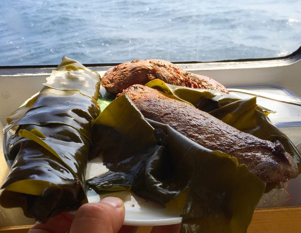 Sous Mer cooking – these fillets were actually roasted in seaweed below sea level – in the galley of a catamaran!