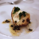 Salt baked celeriac, pickled sea lettuce & ramson capers